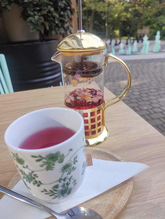 Po spacerze zatrzymałam się w kawiarni „Niebiańska”. Tam trwała akcja wsparcia osoby chorej – zwykły napój mógł stać się mostem między obcymi sobie ludźmi. Kawy o tej porze nie piję, więc wybrałam herbatę owocową „Samo Zdrowie”. Pijąc ją, poczułam, że nawet w prostym geście można odnaleźć ciszę, wspólnotę i bliskość z kimś, kogo się nie zna, a kto potrzebuje.