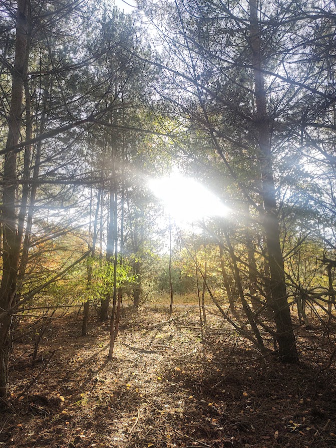 Światło spływało między gałęziami jak złoty deszcz. Przystanęłam i pozwoliłam mu trwać — na twarzy, na powiekach, w sercu. Jesień potrafi być czuła, jeśli człowiek się zatrzyma i da się jej dotknąć.