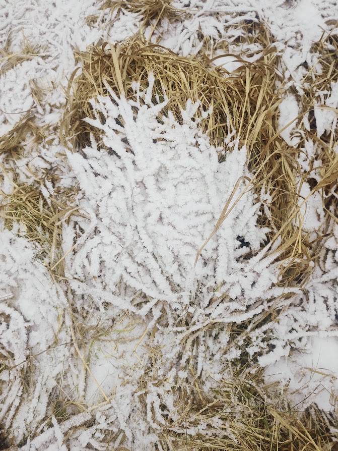 Mróz osiadł w trawie jak delikatna koronka. Zimno potrafi być piękne, jeśli przestaje się z nim walczyć. Jeśli pozwala się mu być.